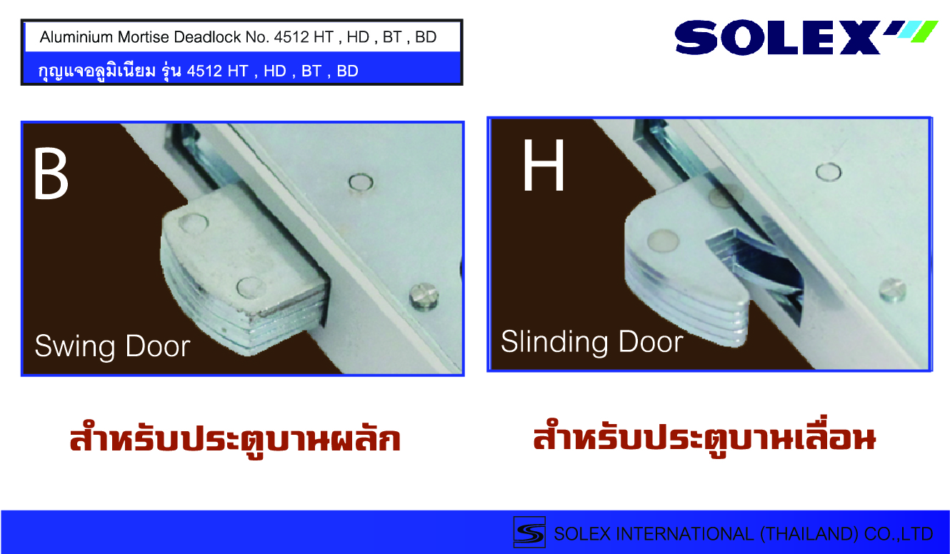 ลิ้นตรง ใช้กับบานผลัก ( Swing Door ) ลิ้นคอม้า ใช้กับบานเลื่อน (Sliding Door)