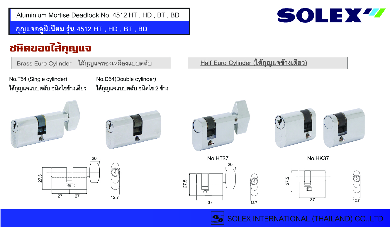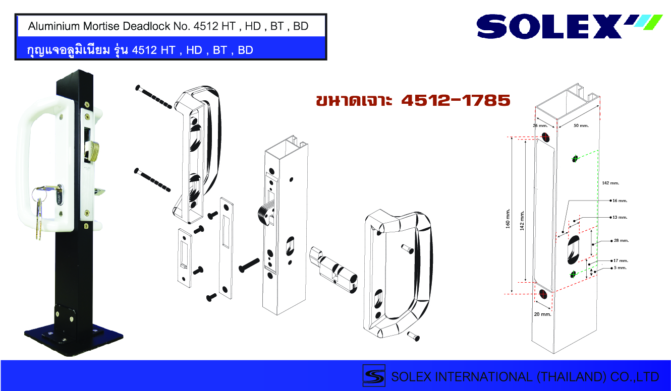 - ติดตั้งใช้งานแบบ ล็อคกุญแจอย่างเดี่ยวไม่มีมือจับประตู No.4512