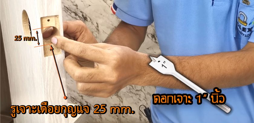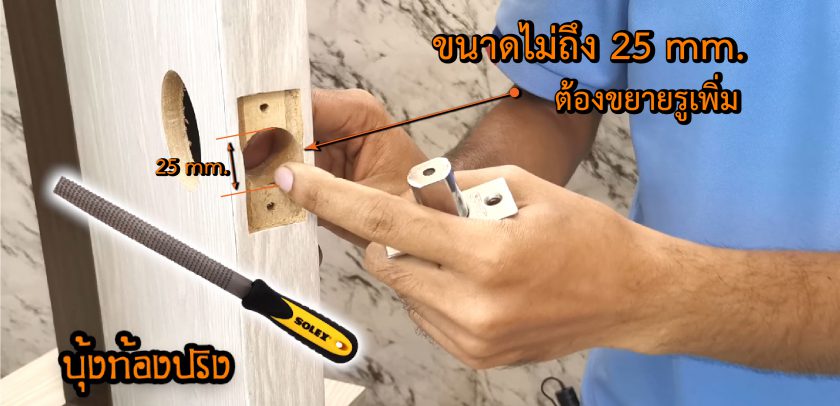 สำหรับประตูใหม่ ให้เจาะโดยใช้ดอกเจาะ 25 หรือ 1 นิ้ว เพื่อประหยัดเวลาในการติดตั้ง