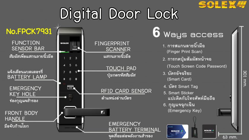 แต่ปัจจุบันในยุคที่มีแต่ความเร่งรีบ อุปกรณ์Digital Door Lock จึงถูกสร้างขึ้นมาเพื่อความสะดวกสบาย ดังนั้นจึงได้ถูกพัฒนามาเป็น มือจับระบบดิจิตอล (Digital) ที่มีสมาร์ทเทคโนโลยีและฟังก์ชั่นมากมายให้ใช้งาน สร้างความสะดวกรวดเร็ว ทำให้การใช้ชีวิตง่ายขึ้น แล้วยัง มีความแข็งแรง ยากต่อการโจรกรรม ติดตั้งได้ง่าย สามารถติดตั้งได้กับทุกประตูขนาดมาตรฐาน ทั่วไป ไม่ต้องพกกุญแจ โดย ใช้วิธีการแสกนลายนิ้วมือ หรือ รหัสเพื่อปลดล็อคได้ มีให้เลือกใช้งานอยู่ 3 รุ่น ได้แก่ รุ่น FPCK 7930 , FPCK 7931 ซึ่งต้องติดตั้งกล่องเมอร์ทิสล็อค (Lock case) และ รุ่น PCK 177 ใช้ติดตั้งเสริมเป็นระบบล็อคแบบ Deadbolt
